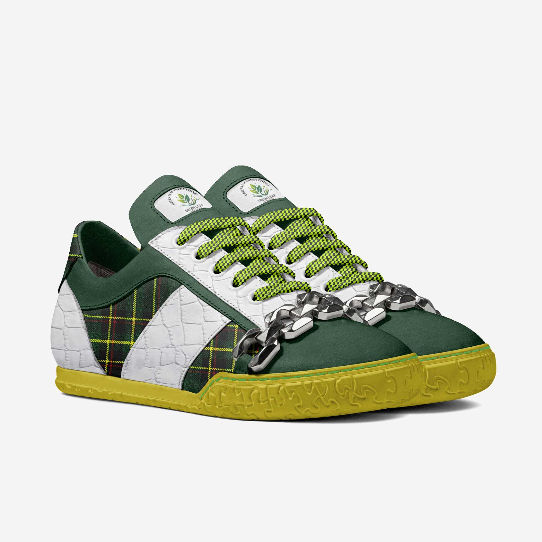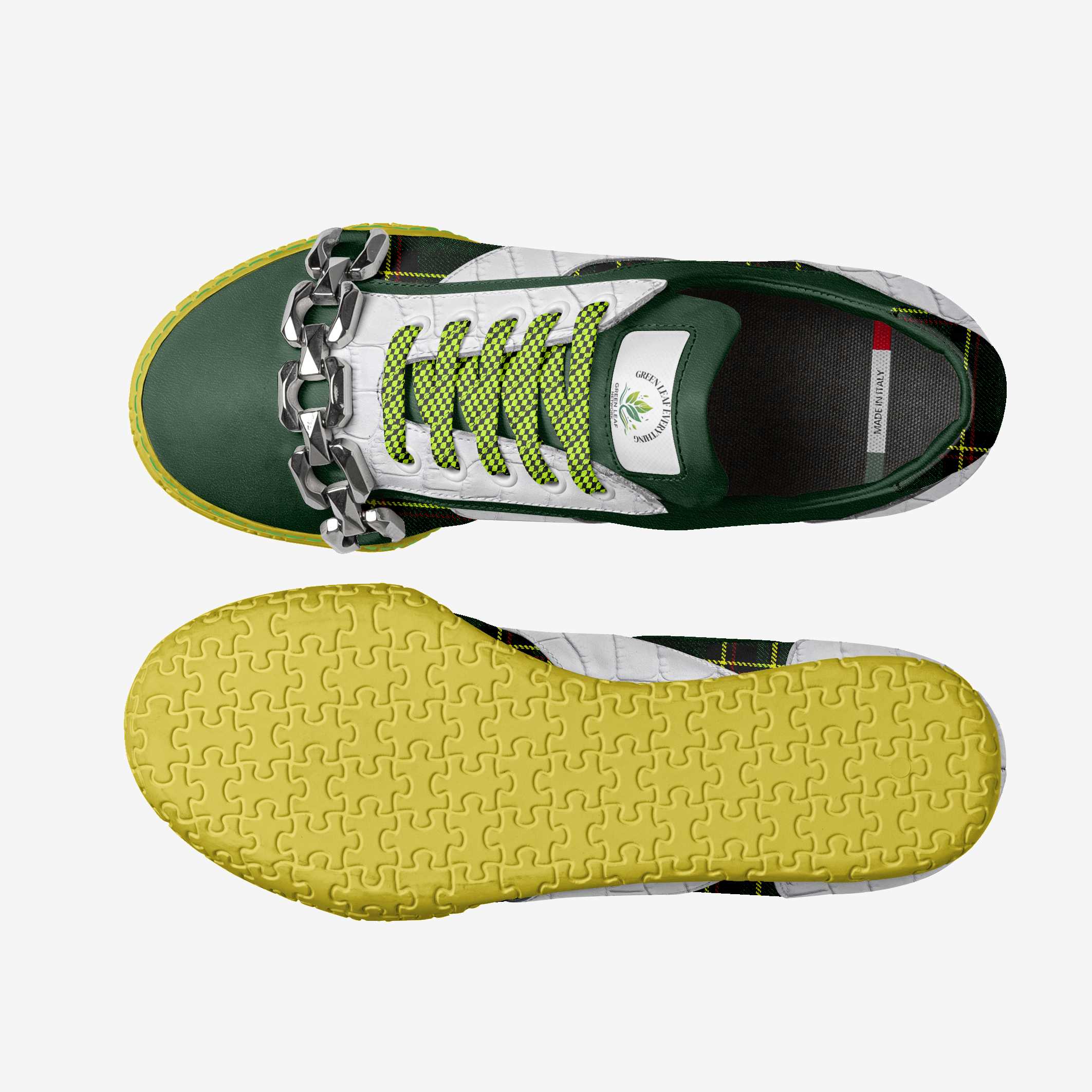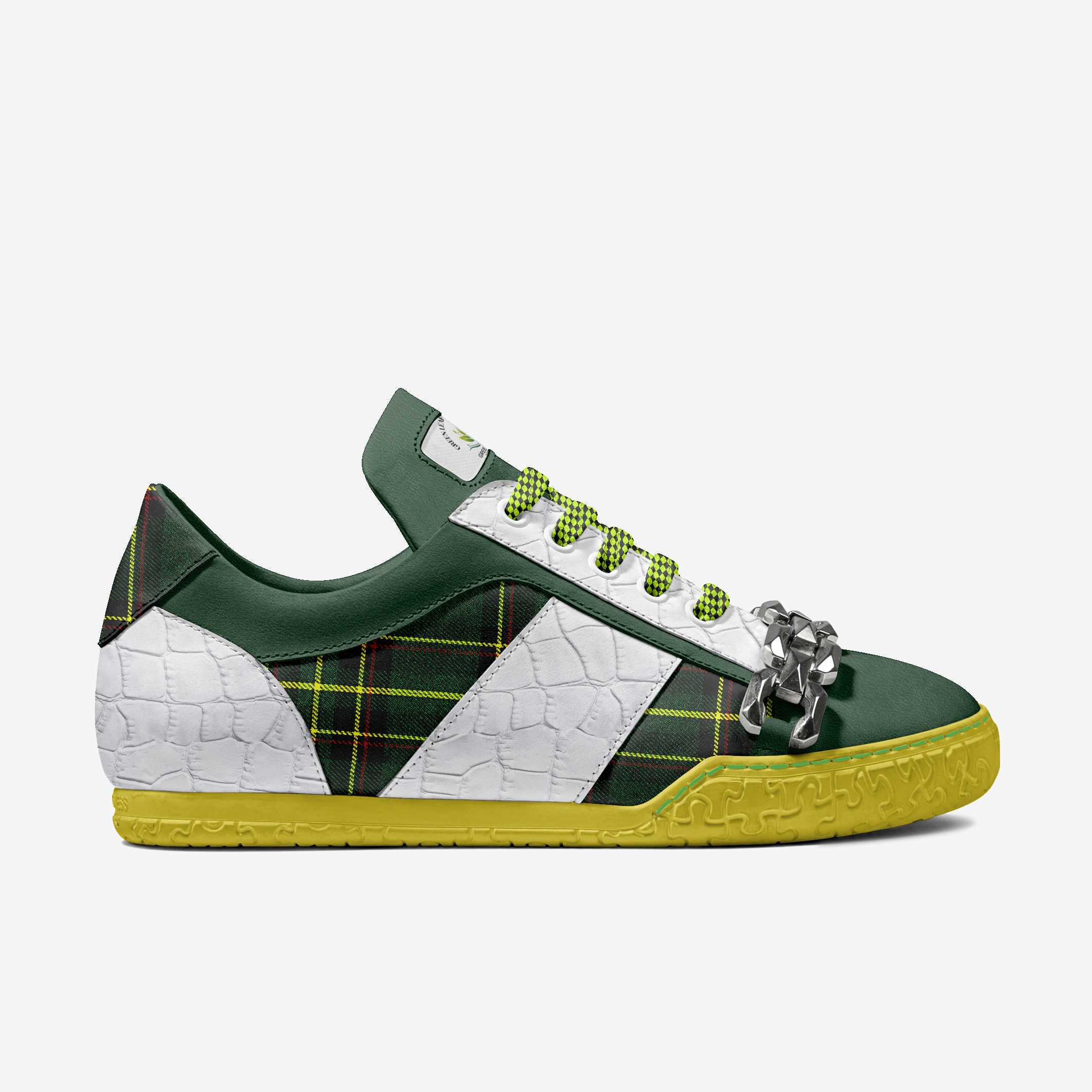 DUNAMIS MODEL B011 MINIMAL METAL LOW TOP Made in Italy This minimal metal low-top sneaker features an innovative design with a chunky chain detail, crafted from Italian materials for comfort and an ergonomic fit, with a lightweight rubber sole. Sizes: Regular Male (7US-13.5US), Female (6US-10.5US) Retail price: from $219
